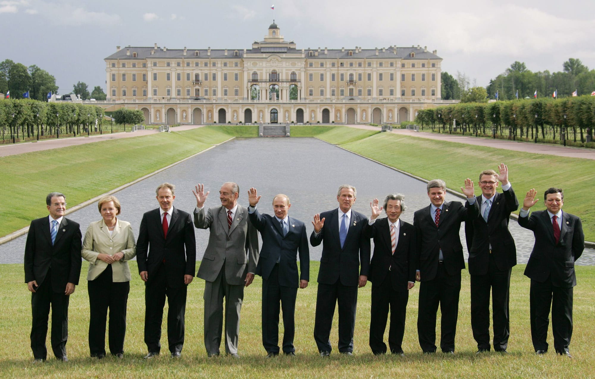 In the summer of 2006, a few weeks after finishing high school in my native Switzerland, I came across a photograph in a newspaper next to an article about a recent G8 summit of world leaders that had taken place in the Russian city of Saint Petersburg. Against a backdrop of the imposing Constantine Palace, the photo showed ten leaders standing shoulder to shoulder. At the time I recognized Vladimir Putin—stony-faced in the middle—and George Bush, to his left. I also recognized a grinning Tony Blair.