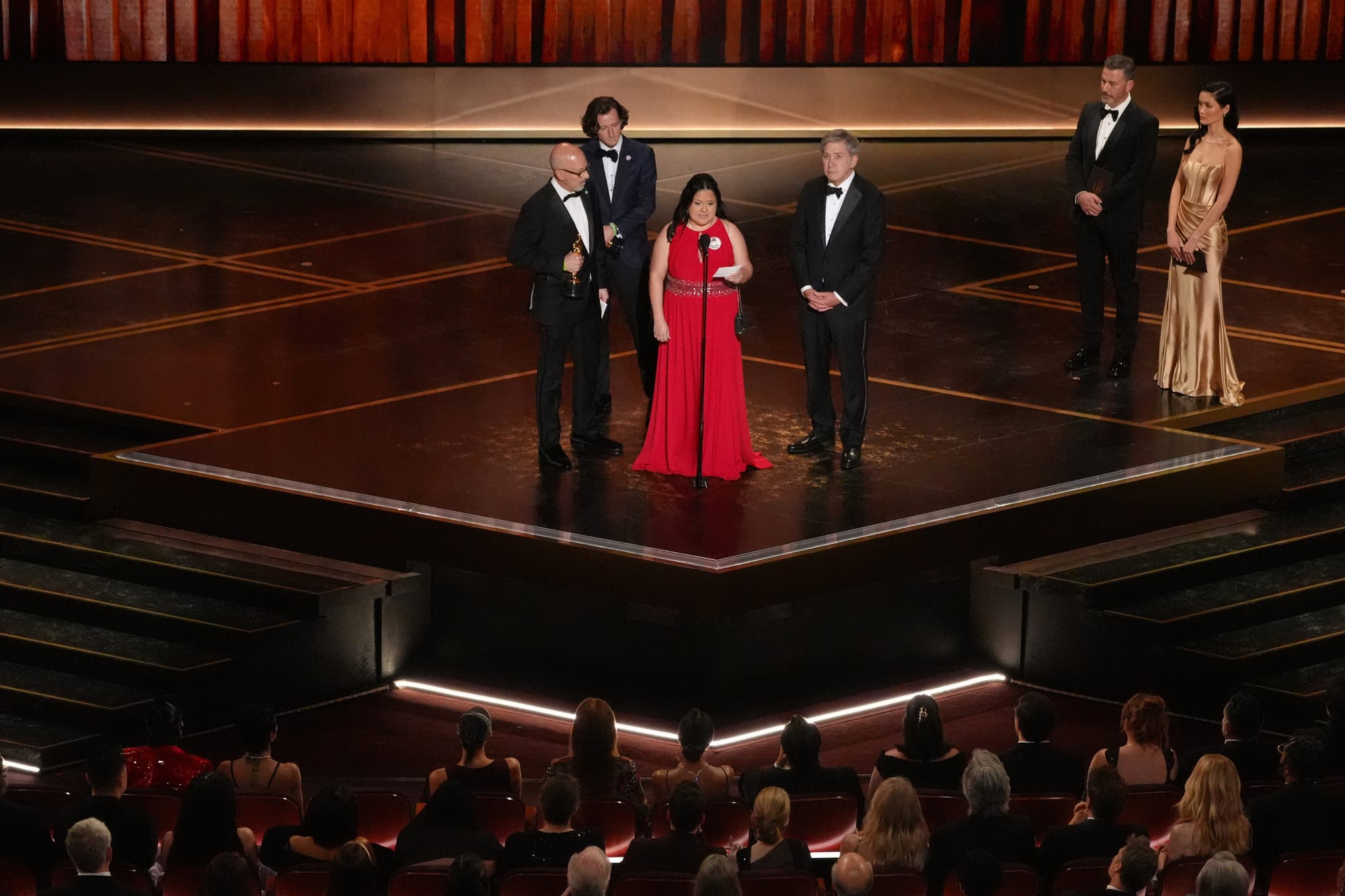 Also heart-wrenching: The brief speech by Gloria Cazares, whose 9-year-old-daughter Jackie was killed in the Uvalde school shooting. Jackie was memorialized along with other children lost in “All the Empty Rooms,” which won Best Documentary Short. “Gun violence is now the number-one cause of death in kids and teens,” Cazares, making a bold statement in a blood-red gown, said. “We believe that if the world could see their empty bedrooms, we'd be a different America.”